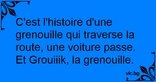 C'est l'histoire d'une grenouille qui traverse la route, une voiture passe. Et Grouiiik, la grenouille.