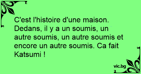 C'est l'histoire d'une maison. Dedans, il y a un soumis, un autre soumis, un autre soumis et encore un autre soumis. Ca fait Katsumi !