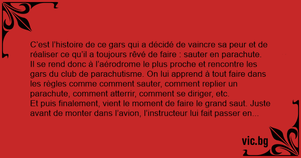 C’est l’histoire de ce gars qui a décidé de vaincre sa peur et de réaliser ce qu’il a toujours rêvé de faire : sauter en parachute.