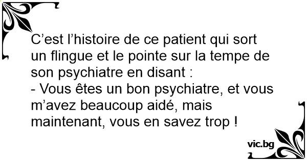 C’est l’histoire de ce patient qui sort un flingue et le pointe sur la tempe de son psychiatre en disant :