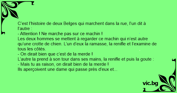 C’est l’histoire de deux Belges qui marchent dans la rue, l’un dit à l’autre :