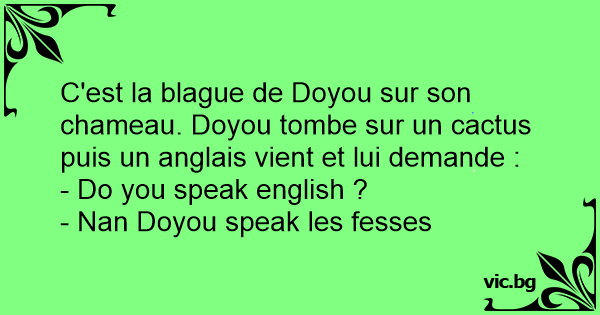 C'est la blague de Doyou sur son chameau. Doyou tombe sur un cactus puis un anglais vient et lui demande :