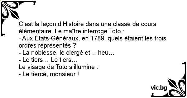 C’est la leçon d’Histoire dans une classe de cours élémentaire. Le maître interroge Toto :