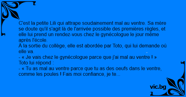 - « Je vais chez le gynécologue parce que j'ai mal au ventre ! »