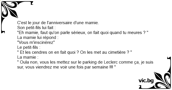 "Eh mamie, faut qu'on parle sérieux, on fait quoi quand tu meures ? "