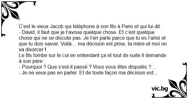C’est le vieux Jacob qui téléphone à son fils à Paris et qui lui dit :