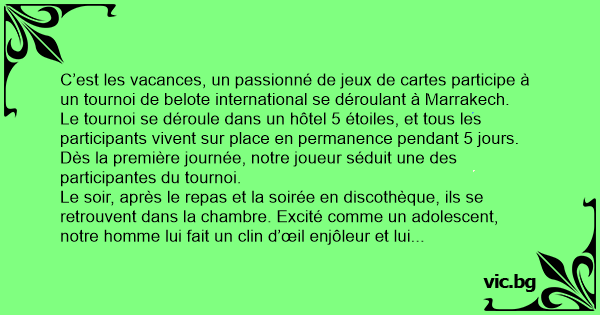 C’est les vacances, un passionné de jeux de cartes participe à un tournoi de belote international se déroulant à Marrakech.