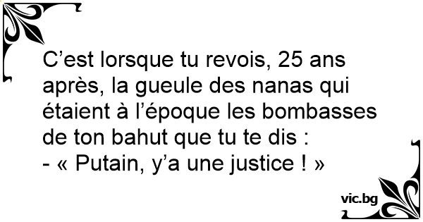 C’est lorsque tu revois, 25 ans après, la gueule des nanas qui étaient à l’époque les bombasses de ton bahut que tu te dis :