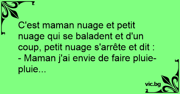 C'est maman nuage et petit nuage qui se baladent et d'un coup, petit nuage s'arrête et dit :