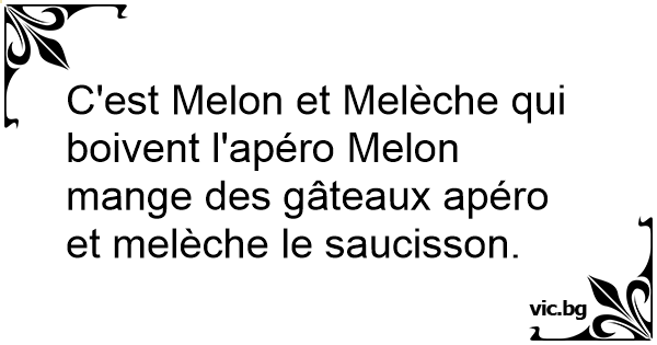 C'est Melon et Melèche qui boivent l'apéro Melon mange des gâteaux apéro et melèche le saucisson.