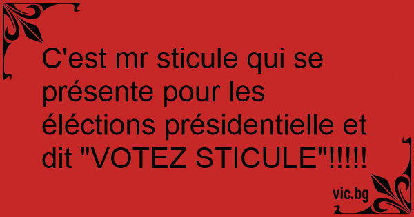 C'est mr sticule qui se présente pour les éléctions présidentielle et dit "VOTEZ STICULE"!!!!!