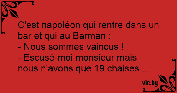 C'est napoléon qui rentre dans un bar et qui au Barman :