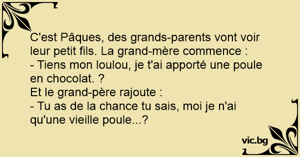 C'est Pâques, des grands-parents vont voir leur petit fils. La grand-mère commence :