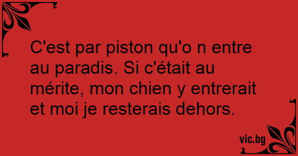 C'est par piston qu'o n entre au paradis. Si c'était au mérite, mon chien y entrerait et moi je resterais dehors.
