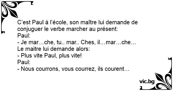 C’est Paul à l’école, son maître lui demande de conjuguer le verbe marcher au présent:
