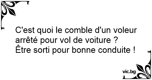 C'est quoi le comble d'un voleur arrêté pour vol de voiture ?
