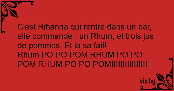 C'est Rihanna qui rentre dans un bar, elle commande : un Rhum, et trois jus de pommes. Et la sa fait!