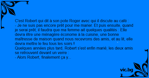 C'est Robert qui dit à son pote Roger avec qui il discute au café :