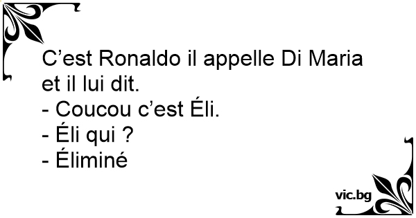 C’est Ronaldo il appelle Di Maria et il lui dit.<br />- Coucou c’est Éli.<br />- Éli qui ?<br />- Éliminé