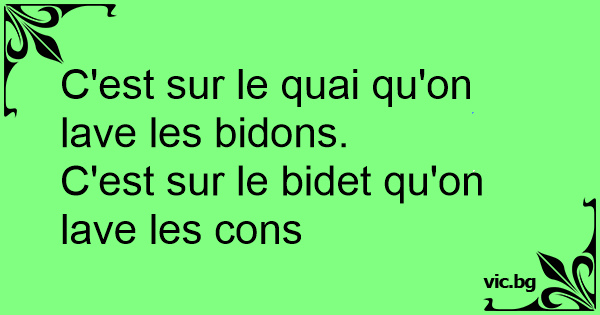 C'est sur le quai qu'on lave les bidons.<br />C'est sur le bidet qu'on lave les cons