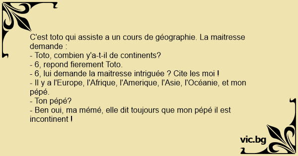 C'est toto qui assiste a un cours de géographie. La maitresse demande :