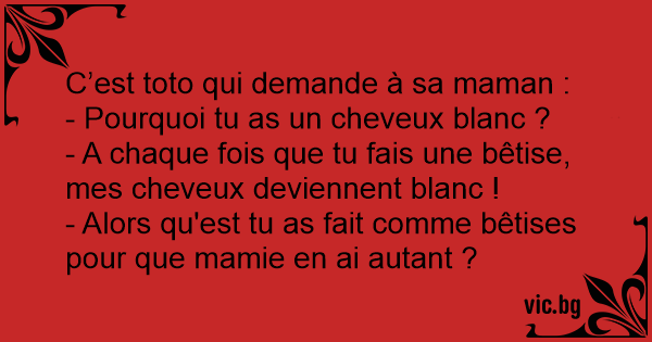 - A chaque fois que tu fais une bêtise, mes cheveux deviennent blanc !