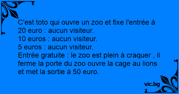 Entrée gratuite : le zoo est plein à craquer , il ferme la porte du zoo ouvre la cage au lions et met la sortie à 50 euro.