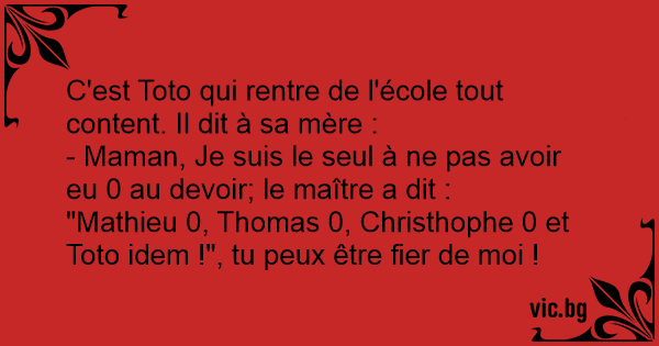 C'est Toto qui rentre de l'école tout content. Il dit à sa mère :