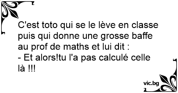 C'est toto qui se le lève en classe puis qui donne une grosse baffe au prof de maths et lui dit :