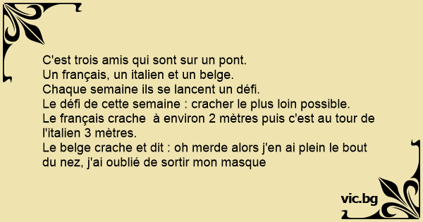 Le belge crache et dit : oh меrdе alors j'en ai plein le bout du nez, j'ai oublié de sortir mon masque