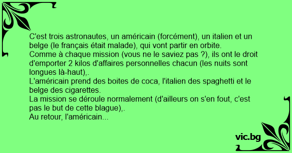 C'est trois astronautes, un américain (forcément), un italien et un belge (le français était malade), qui vont partir en orbite.