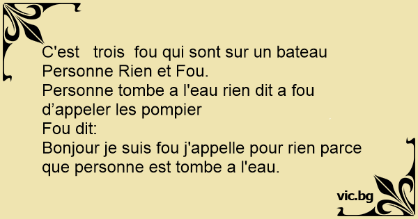 C'est trois fou qui sont sur un bateau Personne Rien et Fou.