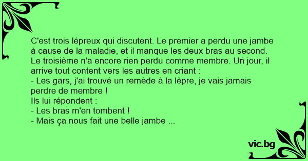 - Les gars, j'ai trouvé un remède à la lèpre, je vais jamais perdre de membre !
