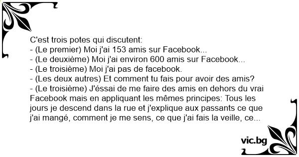 - (Le premier) Moi j'ai 153 amis sur Facebook...