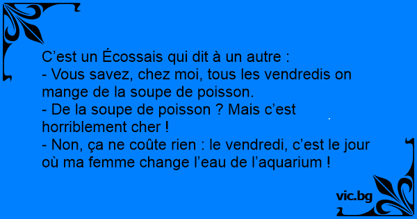 - Non, ça ne coûte rien : le vendredi, c’est le jour où ma femme change l’eau de l’aquarium !
