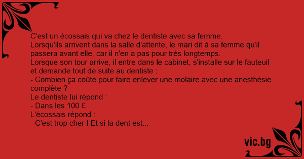 C'est un écossais qui va chez le dentiste avec sa femme.
