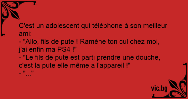 - "Allo, fils de рuте ! Ramène ton cul chez moi, j'ai enfin ma PS4 !"
