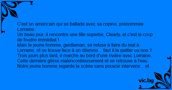 Mais le jeune homme, gentleman, se refuse à faire du mal à Lorraine, et se trouve face à un dilemne... faut il la quitter ou non ?