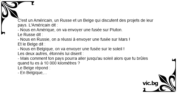 C'est un Américain, un Russe et un Belge qui discutent des projets de leur pays. L'Américain dit :