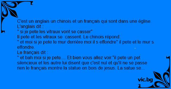Il pete et les vitraux se  cassent. Le chinois répond: