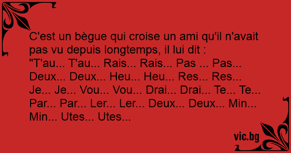 C'est un bègue qui croise un ami qu'il n'avait pas vu depuis longtemps, il lui dit :