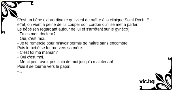 C'est un bébé extraordinaire qui vient de naître à la clinique Sаinт Roch: En effet, on vient à peine de lui couper son cordon qu'il se met à parler.