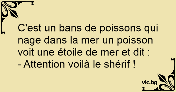 C'est un bans de poissons qui nage dans la mer un poisson voit une éтоilе de mer et dit :