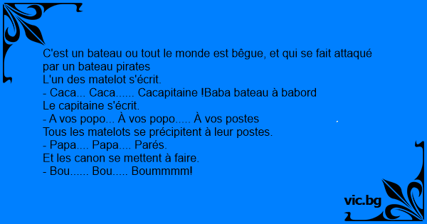 C'est un bateau ou tout le monde est bêgue, et qui se fait attaqué par un bateau pirates