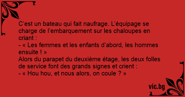 C’est un bateau qui fait naufrage. L’équipage se charge de l’embarquement sur les chaloupes en criant :