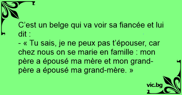 - « Tu sais, je ne peux pas t’épouser, car chez nous on se marie en famille : mon père a épousé ma mère et mon grand-père a épousé ma grand-mère. »