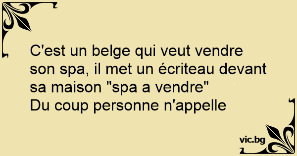 C'est un belge qui veut vendre son spa, il met un écriteau devant sa maison "spa a vendre"