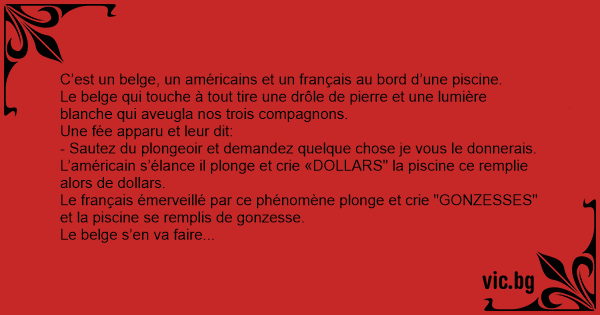 Le français émerveillé par ce phénomène plonge et crie "GONZESSES" et la piscine se remplis de gonzesse.