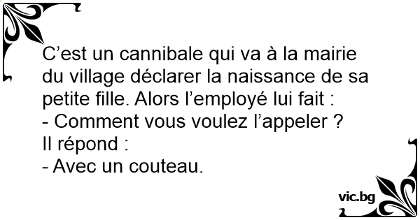 C’est un cannibale qui va à la mairie du village déclarer la naissance de sa petite fille. Alors l’employé lui fait :