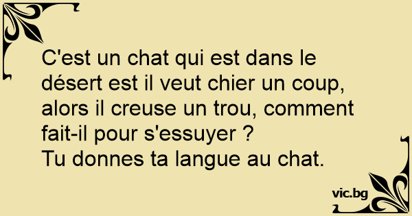 C'est un chat qui est dans le désert est il veut chier un coup, alors il creuse un trou, comment fait-il pour s'essuyer ?